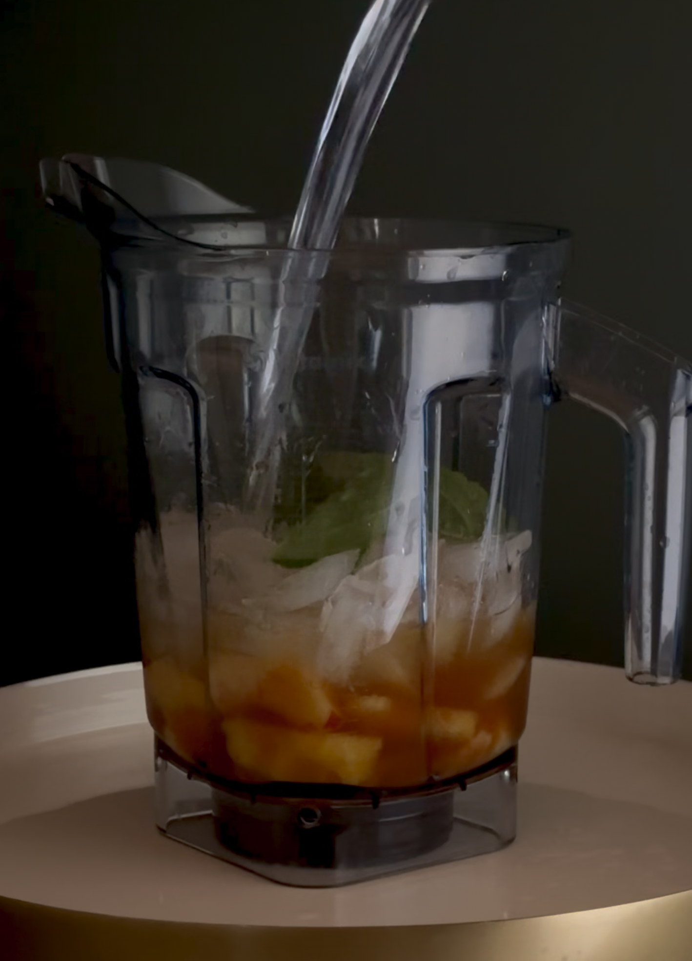 Peach and iced tea are two great flavours that taste even better together! Despite being slushy and decadent, this is a nicely balanced cocktail, with herbal and bitter notes that play nicely with the fruity and floral elements.